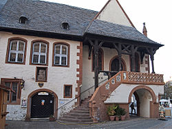 - Town Hall and Hall of Homage, Markt 7, ☏ +49 5321 78060, [email protected]. Apr – Oct and Dec: M-F 11:00-15:00, Sa Sunholidays 10:00-16:00. During the rest of the year the Hall of Homage can be visited during the guided city tour One Thousand Steps through the Old Town (daily 10:00). Tickets at the Goslar Tourist Information.. Town Hall (Rathaus) – The Goslar Town Hall is, indeed, a building of the centuries: the east wing with the arcades opening onto the Market Square was begun in the middle of the 15th century and over the following 400 years the Town Hall was continually extended and enlarged. Today its overall impression is determined by the 16th-century additions: a period of great prosperity for Goslar, which, as a member of Hanseatic League and a Free Imperial City, profited from the flourishing mining industry. The Town Hall still serves its original purpose, housing the Lord Mayor’s Office and the hall where the Town Council still discuss the weal of the town under the beautiful star-studded wooden ceiling. Hall of Homage (Huldigungssaal) – The Hall of Homage was set up as a council chamber between 1505 and 1520. It is a unique jewel of late Gothic interior decoration: its walls, the ceiling and even the window alcoves are completely covered with wood panel paintings. Each painting is an artwork of quality, contributing to the overwhelming complete ensemble. Richly carved wood decorations surround each painting. After many years of restoration the room is now protected by complex environmental protection devices so that this masterpiece can be preserved for future generations. Adults €3.50. Groups €2.50, children/youth €1.50..