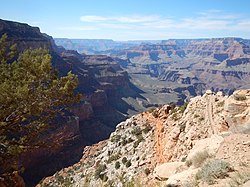 The Grand Canyon is in northern Arizona, and is one of the great tourist attractions in the United States as well as one of the seven natural wonders of the world. The massive canyon encompasses several distinct areas, most famous of which is Grand Canyon National Park, a national park and a UNESCO World Heritage Site. Visitors to the national park have many options, including: the remote North Rim; the more accessible (and therefore more crowded) South Rim; parts of the canyon, such as Phantom Ranch or the Colorado River, upon which many boating trips are made. In addition, parts of the southwestern end of the canyon are within the borders of two Indian reservations: the Havasupai Indian Reservation and the Hualapai Indian Reservation (which includes the development known as Grand Canyon West). Lastly, part of the southeastern end of the canyon is within the borders of the Navajo Nation. Except for the Navajo Nation portion, all sections of the canyon offer amenities for visitors. However, the national park, and in particular the South Rim, is by far the most popular destination and the best equipped to handle the millions of yearly visitors.