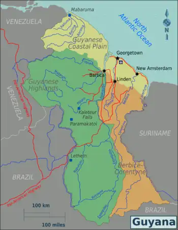 Although the Guayana Esequiba region (the western half of the country) is claimed by Venezuela, from a traveller's perspective, Essequibo is under the control of Guyana and, therefore, we cover the region as part of Guyana. This is not an endorsement of claims by any side in the dispute. |