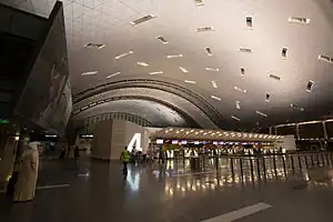 Hamad International Airport (DOH  IATA) is the main airport of Doha and the busiest in Qatar. It is the main hub and central transit point of state-owned carrier Qatar Airways, which makes up more than 90% of its commercial air traffic.