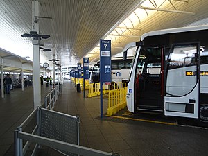 - National Express coach (direct to London Victoria Coach Station). approx. 07:00-23:30. A direct coach service from Heathrow Central Bus Station to London Victoria Coach Station every 30 min. Journey times are 40-50 min. Tickets can be bought from the National Express ticket office at Heathrow Bus station or on the Internet. Some services operate via Terminals 4 & 5, but the service is more limited. Free transfer is available to Terminals 2 & 3 and the Central Bus Station from Terminals 4 & 5 via the Heathrow Express and Connect trains or the shuttle bus services. All coaches are accessible to wheelchairs. to London Victoria Coach Station from £6; transfer to Gatwick Airport £20; London Travel cards and Oyster Cards are not valid.