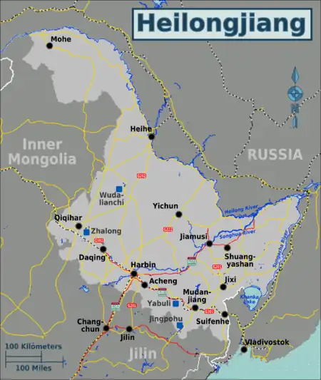 Heilongjiang Province (黑龙江省; Hēilóngjiāng) is in the far northeast of China. The province is famous for its fierce winters, snow and ice festivals and Russian influence.