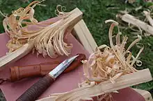 To make a fire in difficult conditions, some of three kinds of tinder is usually available in the forest: dead dry twigs low on spruce trees (only take those easy to snap off – the spruce easily gets infected), birch bark (not bark resembling that of other trees) or resinous pine wood. The three require different techniques, so train somewhere where taking the material does not harm, before having to use them. Using the spruce twigs you need enough of them, with enough fine material, and the right compromise between enough air and enough heat (you might need to use your hands; you should respect the fire but not be frightened). Using birch bark is easy, but check how it behaves. A knife is useful to get it off the wood in bigger pieces. For pine the key is to have fine enough slices. Pine usable as tinder is recognized by the scent at a fresh cut and by it being long dead but not rotten, often as hard parts of an otherwise disintegrated moss covered stump (train your eye!). In the fell birch forests, where there is no dry wood, the birch wood should be split into thin enough pieces, and made extremely thin to get the fire going (thicker firewood can be used to keep mosquitoes at bay, and after it having dried enough). Above the tree line you can use dry twigs, but getting enough dry firewood can be difficult.