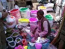 Hindu iconography in the form of murtis (statues and sculptures), paintings and drawings of various deities or mythological events are popular items that can be bought during visits to Hindu pilgrimage sites. There are often several stalls set up near major temples selling such items. Other objects for sale include garlands, incense sticks and diya oil lamps, all of which are used during puja rituals, and japamala prayer beads, which are used when chanting mantras.