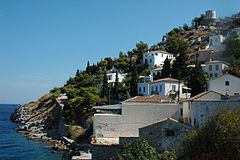 Hydra (Greek: 'Υδρα Ydra or Idhra, pronounced "EE-thra") is one of the Saronic Gulf Islands in central Greece. The port of Hydra has a scenic location in a deep harbour, with whitewashed houses rising on the hills on both sides from an azure blue sea.