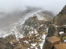 Footprints (routes taken by climbers before you) are often visible on sandy parts of the route, on rocky parts its up to you to decide where to walk. Generally there's no ice on the route, but there's a good chance to encounter snow.