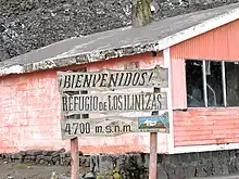 - 🌍 Refugio Nuevos Horizontes (a bit below the saddle (ensillada) between the two summits). An unserviced hut at 4,770 m ASL, built in 1960. It's built in brick with a good roof and has about a dozen beds and cooking facilities. There's no running water or firewood, but you can get water from a nearby mountain stream. stay for foreigners $15, camping $5.