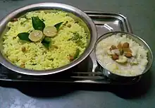 Halwa refers to a variety of dense confections whose texture can vary from moist and creamy like a pudding to dry and hard like candy. It usually consists of base ingredients cooked in ghee and sugar, sometimes milk is added for consistency and is garnished with nuts, raisins and shredded coconut. The most common halwa is made from sooji (semolina). Other popular varieties include gajar (carrot) and atta (whole wheat).