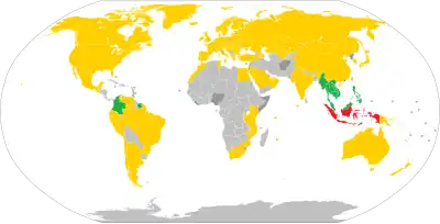 The Kementerian Luar Negeri or Ministry of Foreign Affairs maintains a complete searchable database of diplomatic institutions. All embassies are located in Jakarta (see that article for listings), but a few countries maintain consulates and honorary consulates elsewhere, mostly in Surabaya, Bali, and some cities (e.g. Malaysia in Pekanbaru, the Philippines in Manado, Papua New Guinea in Jayapura and so on).