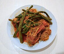 - Gudeg. , jackfruit stew from Yogyakarta. It always equipped with various kinds of side dishes, two of which are sambal goreng krecek. , cow or buffalo skin in spicy chili paste sauce and bacem. , traditional Javanese cooking method, egg, tempe, or tahu boiled in coconut water mix with spices and brown sugar.