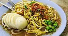 - Mie Aceh. , an Acehnese curried spicy noodle dish. The thick yellow noodle is served with slices of beef, goat meat, lamb, mutton, and seafood, such as shrimp or crab.