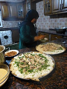 While mansaf is the national dish, most people in urban areas eat it on special occasions and not every day. Other popular dishes include Maklouba, stuffed vegetables, freekeh.