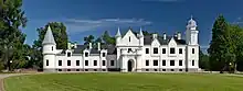 - π Alatskivi Castle (Estonian: Alatskivi loss), Alatskivi (near the Zwiebelberg). A Neo-Gothic castle dating to the 17th century. It was rebuilt in the late 19th century modelled on the royal residence of Balmoral in Scotland. Five rooms on the first floor house the Eduard Tubin museum, which documents his accomplishments as a music composer and conductor. The castle is surrounded by various ancillary buildings and a forested park of 130 hectares. The park contains many oaks, ashes, maples, alders and an approach road lined with linden trees. It is built on the high bank of Lake Alatskivi at the foot of the Alatskivi valley. An arched entrance leads to the castle along a road lined with linden trees.