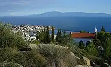 - 🌍 Panagia Church (at the end of the old town). From its remarkable forecourt you have a good view to the island of Thasos. Opposite the church is a pub with a beautiful terrace from where you have a wonderful view of the harbour. It's worth resting there with a cold beverage from the somewhat strenuous tour of the hilly old town.