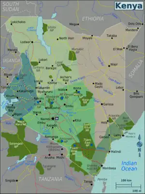 WARNING: Due to risks of kidnapping, cross-border violence, and banditry, travelling within 110 kilometres (68 mi) of the borders between Kenya and Ethiopia, Somalia, or South Sudan is not safe. |