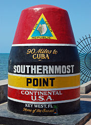 - 🌍 Southernmost Point (Corner of Whitehead and South Streets). A "buoy" (actually an old sewer junction painted to look like a buoy) placed at this point contains a claim that it is the southernmost point in the continental USA, but the claim is inaccurate. The true southernmost point of Florida is on Ballast Key, an island about 9 miles (14 km) from Key West which was off-limits to the public until 2019, when it was deeded to the US Fish and Wildlife Service and added to the Key West National Wildlife Refuge. (Today, it's open to boaters during daylight hours only for minimally invasive activities such as birdwatching and nature photography.) The marker is also not the southernmost point on Key West island—a private yard is immediately southeast of the buoy, and the island's true southernmost point is in the Truman Annex west of the buoy, which is U.S. Navy property and can be entered only by authorized Navy personnel. Even before Ballast Key was opened to public access, the buoy wasn't even the southernmost point that could be accessed by the public—that would be the beach area of Fort Zachary Taylor (see above). Nonetheless, it's one of the city's most visited and photographed spots. Expect large crowds on the weekends, and waiting for your turn to take a picture is the norm. Free.