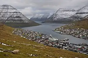 The history of Klaksvík dates back to the Viking Age, around the 9th century, when Norse settlers first arrived on the Faroe Islands. The town's name derives from the Old Norse word "Klakkr," which refers to a mountain, and "vík," meaning bay or inlet. The town is located on a natural harbour, providing a sheltered area for fishing and trade throughout its history.