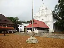 - 🌍 St. George's Church (In nearby town of Kadamattom). Built in 6th century AD. This Malankara Orthodox Syrian Church church is famous for its rare combination of Indo-Persian architecture coupled with Kerala Hindu style decors and mandapams. The Church has its origins from a Hindu Brahmin family who converted to Christianity, yet maintained their Hindu tantric beliefs and practices. Thus many of its customs are mixture of Christianity and Hinduism. The Church is extremely famous for its legendary Kadamattom Kattanar (Priest) who lived in 10th century AD here, following Hindu Tantric practices to cure those who possessed as well as quell ghosts and spirits. Many Hindu temples were established by the Kadamattom Kattanar nearby, highlighting the level of harmony between Christianity and Hinduism in Kerala. Even today, people irrespective of religions, visit the shrine to seek blessings of the Kattanar. The Holy cross of St.Thomas kept here, was gifted by St.Thomas to an Assyrian King before coming to Kerala, which was brought by first Immigrants from Syria after the fall of Babylon.