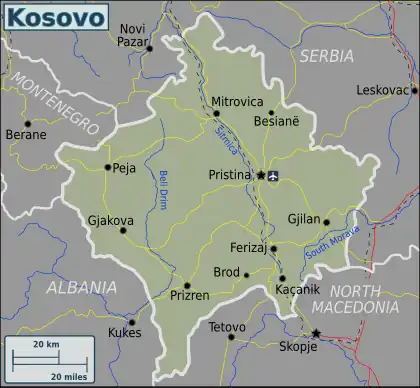 While the independence of Kosovo is disputed by some states, from a visitor's perspective it exercises control over its land, with its own entry requirements. For this reason, Wikivoyage treats Kosovo as a country. This is not an endorsement or refutation of either side of the dispute. |
