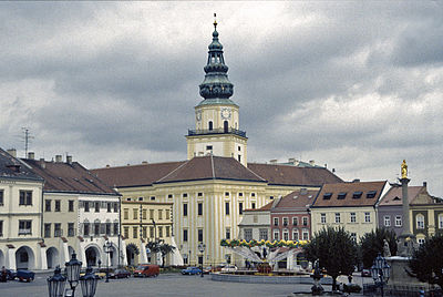 Kroměříž is a town in South Moravia, Czech Republic. Kroměříž stands on the site of an earlier ford across the River Morava, at the foot of the Chriby mountain range which dominates the central part of Moravia.