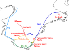 The Kii route (紀伊路 Kii-ji) connects Nara and the central Kansai region to the Kumano Sanzan. It is rarely walked, since Highway 42 and the JR Kii Line now duplicate much of the ancient route.