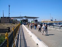 From Kazakhstan, the road from Almaty to Bishkek is the busiest. The border at Kegen may be more difficult to get across. Frequent and obvious smuggling happens in this border, and it's quite obvious that the immigration and the border guards are in cahoots with the smugglers. Visa on arrival is not possible here, and if coming from Kazakhstan, make sure you have a double-entry or multiple entry visa for Kazakhstan in case of troubles with Kyrgyz border officials.
