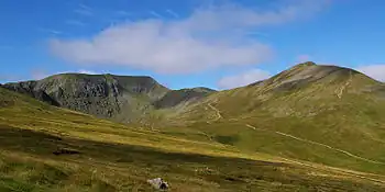 The highest is π Scafell Pike. (pronounced "Scaw-fell") . This "highest" designation leads to a lot of traffic, and visitors who want to experience a high Lakeland Fell may want to choose another. Some of the slightly smaller fells are in fact much more rewarding to climb as well as offering better views. π Great Gable. and π Helvellyn. are popular choices. Less well-known hills include Grisedale Pike, Fairfield, and Bowfell.