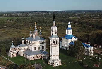 - 🌍 Church of the Ascension (Благовещенская церковь). 1732–1762. A one-domed church, similar in style to the "boat churches" of Totma.