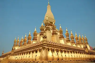 Laos is officially Buddhist, and the national symbol, the gilded stupa of Pha That Luang, has replaced the hammer and sickle even on the state seal. Still, there is a good deal of animism mixed in, particularly in the baci (also baasi) ceremony conducted to bind the 32 guardian spirits to the participant's body before a long journey, after serious illness, the birth of a baby, or other significant events.