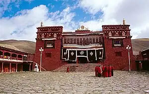 - Ganden Thubchen Choekhorling Monastery (Lithang Gompa, Litangsi). The monastery is just on the northern edge of town and belongs to the Gelukpa sect of Tibetan Buddhists. In 1956 the monastery came under siege and them bombing from the People's Liberation Army, following resistance to the attempt to impose communist rule and reforms in Kham. This was a critical turning point in the Tibetan uprising, when some Khampa decided as a result to begin guerrilla warfare. Other monasteries in the region may have similar histories- eg at Xiangcheng there a lot of ex-monastic rubble - but where they did not play such an important historical role as a specific site, this is harder to uncover. What you see is therefore substantially reconstructed, as much of the monastery was destroyed. Monasteries were also devastated by the Han during the cultural revolution. As usual, you are not allowed to take photographs of holy relics inside. The friendly monks will guide you through the main buildings, including some breathtaking views from the temple roofs. The monastery was founded in 1580 by the third Dalai Lama Sonam Gyatso on the site of an older Bön-monastery. There are three main temples in the compound, of which one is under construction. The oldest seems to be the one on top of the hill, still featuring the wooden construction of the upper rim of the buildings. Inside, you can view several chambers and a bedroom in which the 7th Dalai Lama is said to have resided. Many more famous and influential personal figures were born here, including the 7th Dalai Lama, 10th Dalai Lama, the most influential Zebutsundaba Lama of Mogonia, the 7th Gyamuyang Lama, the 7th, 8th and 9th Pabalha living Buddha of Chamdo monastery and the 1st, 2nd and 3rd Xianggen living Buddha.