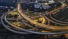 it is crossed by the horizontal arterial road Yidu Avenue, Chenglong Avenue (and its extension Chengjian Expressway), Chengluo Avenue, Chengdu-Chongqing Highway, Chengnan Highway, ChengAnYu Highway, Tianfu International Airport Highway, and the longitudinal arterial road, the East Third Ring Road, Shuwang (Honghe) Avenue, Chengdu Bypass Highway, New Shuanglong Road, and Automobile City Avenue, Chengdu Ring Road, Chengdu Second Bypass Expressway and other crisscrossing road networks run through Longquanyi District.