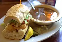 - Gumbo - probably the most 'Louisianan' of all foods (and most well-known outside of the state), gumbo is a soup that uses a thick meat- or seafood-based stock, chunks of meat/seafood, a thickener, and the 'holy trinity' (celery, bell peppers, and onions). Gumbo is usually classified based on the type of thickener used (okra or filé powder).
