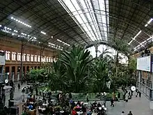- 🌍 Puerta de Atocha (Estación de Atocha). 1 km south of city centre, it's divided into two main sections, "Madrid Puerta de Atocha Almudena Grandes" for mainline and Madrid Atocha Cercanías local and regional trains. The mainline part is set inside the towering old station building, where the former track area has been converted into a retail & food mall, along with a tropical garden with a pond full of small turtles. The Cercanías part, adjacent, has a memorial to the victims of the terrorist attack of 11 March 2004. Although both parts require tickets from passengers to access the platforms, the mainline part also has airport-style security screening checkpoints for departing passengers so make sure you arrive at the station well ahead of your train’s departure time to reduce the risk of missing it due to long security queues. Knives longer than 6 cm are not allowed onboard, will be confiscated and maybe destroyed. This especially applies for train to Barcelona.