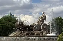 - 🌍 Plaza de Cibeles (Banco de España 2 ). A massive roundabout at the intersection of Calle de Alcala and Paseo del Prado, this plaza houses one of Madrid's emblems, the Fountain of Cibeles, which portrays the Roman goddess of fertility sitting upon a chariot pulled by two lions. On the southeast corner dominating the Plaza is one of the world's most beautiful city halls, the Palacio de Cibeles (formerly the Palacio de las Comunicaciones), an impressive structure with a jaw-droppingly spectacular façade. Inside, the building holds a cultural center with changing art exhibits and info on Madrid, and you can climb to the upper floors for some excellent views out the window. On the southwest corner of the square sits the imposing Bank of Spain (Banco de España) building, while the northeast corner is home to the Palacio de Linares, which holds the Casa de América, a cultural center with an art gallery of Latin American works.