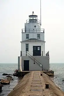 - π Manitowoc North Breakwater Light (to access lighthouse, park at the parking lots in between the marina and yacht club; it will roughly be more than 1/2 of a mile walk, though the last 1000 ft of the breakwater may be inaccessible during periods when Lake Michigan water levels are high).