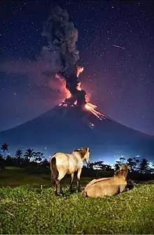 Mayon is an active stratovolcano with a nearly perfect cone in the province of Albay in the Philippines. It is in the Mayon Volcano Natural Park, one of the first national parks of the country.