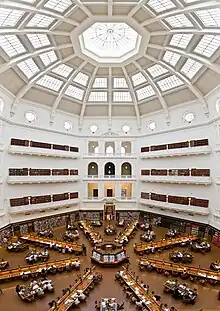 - π State Library of Victoria, 328 Swanston St (Melbourne Central Station, or tram routes 1, 3, 6, 8, 16, 67 or 72: Stop 8), β +61 3 8664 7000. M-W 10AM-9PM, Th-Su 10AM-6PM, except public holidays. Built in stages beginning in 1854, it has an impressive classical revival faΓ§ade. Includes a good newspaper reading room, genealogy room and an art collection, as well as the fantastic La Trobe Reading Room and its huge dome. Bushranger Ned Kelly's armour is stored permanently on display, along with a variety of galleries and exhibitions. Internet terminals are provided for research only, not email, and usually need to be booked because of high demand. Coin-operated lockers are available just off the lobby, where large bags must be deposited before entry. Free Wi-Fi and guided tours are also available. Free.