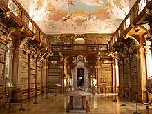 - 🌍 Melk Benedictine Abbey (Benediktinerstift Melk), Abt-Berthold-Dietmayr-Straße 1 (ticket booth on the south side, entrance at the east), ☏ +43 2752-555-232, [email protected]. May-Sep daily 09:00-17:30 (last entrance at 17:00); Mar-Apr, Oct daily 09:00-16:30 (last entrance at 16:00); Nov-Mar: guided tours only at 11:00, 14:00, (German and English). The must-see in Melk. The abbey is built on a bluff overlooking the Danube River to the northwest and the town center to the south. Most of the design of the present abbey (a reconstruction started in 1702) was by the architect Jakob Prandtauer. The 200m-long Kaisergang (Imperial Corridor and Abbey Museum) is decorated with portraits of Austrian rulers. The Marmorsaal (Marble Hall) contains pilasters coated in red marble; a richly painted allegorical picture on the ceiling is the work of Paul Troger. The Bibliothek (Library), rising two floors, again with a Troger ceiling, contains some 80,000 volumes. The Stiftskirche (Abbey Church), with its 200-ft dome and symmetrical twin towers, dominates the abbey complex and emphasizes its sacred purpose. Damaged by fire in 1947, the church is now almost completely restored, even to the gold-bullion gilding of statues and altars. With/without guided tour: €11/13 (adults), €6/8 (concessions).