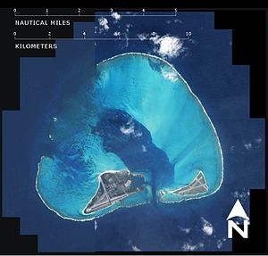 Midway is part of the extended series of Pacific islands which include Hawaii. It is an atoll of several low, sandy islands. The two largest are Sand Island (the most developed) and Eastern Island (not to be confused with Easter Island), with the smaller Spit Island between them. A coral reef, one of the most northerly of this kind, nearly encircles them. The three largest islands total 6.2 km2 in area; their collective coastline is 15 km. The highest point is 13 m above sea level.