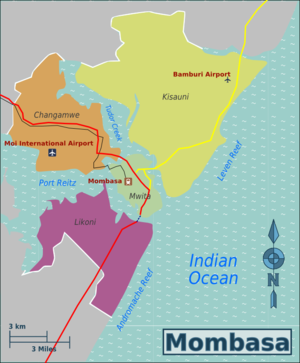 - in Mvita: Docks (in the port of Kilindini), Kilindini, Makupa, Mwembe