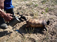 For special occasions, boodog (боодог) or goat/marmot barbecue, is particularly worth experiencing. For about 15,000-20,000 ₮, a nomad will head out with his gun, shoot a marmot or a goat, and then cook it for you without a pot: the meat, vegetables, water and stones are cooked inside the skin of the animal. They skin it very carefully, and then tie off the holes at the legs and back side, put the food and hot stones inside, tie off the throat, and let it cook for about 30 minutes. Though rare, with only 692 cases of marmot plague recorded between 1928 to 2018, the Tarbagan marmot is known to carry the bubonic plague, but fatal cases tend to be those that partake in the consumption of raw marmot organs that are sometimes eatern separately from the boodog.