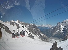 One reason for preferring the French side is that you ride part-way up Mont Blanc: from Chamonix by cable car to Aiguille du Midi at 3810 m, the start of the 3 Monts ascent, or from St Gervais by rack railway (the "Tramway") to Nid d'Aigle at 2380 m, the start of the Voie Royale ascent. See Chamonix for hours and tariffs.