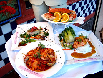 - π Bubba Gump Shrimp Co, 720 Cannery Row, β +1 831 373-1884. Su 11AM-9PM, M-W 11AM-8PM, Th 11AM-8:30PM, F Sa 11AM-9PM. This location is the first Bubba Gump, opening in 1996. This is a more recognizable location set in the background of many smaller seafood places in the Cannery Row area - explore the options as you walk around.