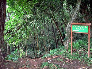 - Copolia Trail is the only trail in the park where you'll need to pay – see § Fees and permits above (Rs 100 as of 2022). Tickets can be purchased at Sans Souci, next to Copolia Lodge. The trail is just a few metres short of a kilometre (one way), which is not overly long, but if you're a novice hiker, the impressive views from the 497-metre 🌍 Copolia is rewarding. The trail is only open 08:00–16:00.