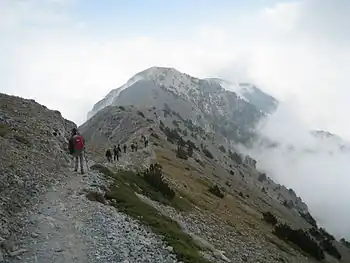 - The Greek hiking path O2, ascending from Karya to the summits.