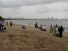 - 🌍 Girgaon Chowpatty (गिरगाव चौपाटी Girgāv Caupāṭī) (suburban: Charni Road Western ). This is the city's most famous beach, located at one end of Mumbai's most famous promenade. This is not a place to sunbathe, however. Go here to watch the crowds enjoying themselves and have bhel puri, as a moderately famous Hindi song asks you to. Chowpatty (caupāṭī) in Marathi means "beach", so you may hear people referring to other beaches suffixed with "Chowpatty" (for example, "Juhu Chowpatty"). But if they say "Chowpatty" without qualification, they are referring to this place. The beach is famous for its Ganesh Chaturthi celebrations when hundreds of thousands of people from all over Mumbai come to immerse the idols of Lord Ganapati in the Arabian Sea. It is also one of the many places in the city where the Ramlila is performed on a stage every year. An effigy of Ravana, which is erected on the sand, is burnt by the end of the 10-day performance.