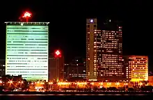 - 🌍 Nariman Point (नरीमन पॉईंट Narīman Pôīṇṭ; Manhattan of Mumbai) (at the southern end of Marine Drive). The area is on land reclaimed from the sea. Nariman Point is the business hub of Mumbai. However, with the change in economic conditions, many companies have shifted to other areas of Mumbai, like Parel, Worli, Bandra Kurla Complex (BKC), Andheri-Kurla Road and Powai. There are many airline offices and luxury hotels here. Don't miss out on the Air India building. It is widely regarded as the "Manhattan of Mumbai" and it boasts of a spectacular skyline and pricey residential condos. It is also the main financial district of Mumbai and houses most of the financial services and brokerage companies—both Indian and international. It is also the location for the Vidhan Bhavan which is the political headquarters of the state of Maharashtra.