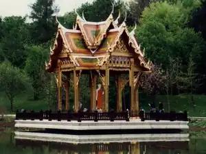 - 🌍 Westpark (U-Bahn U6: Westpark). It was created in 1983 to host an International Garden Expo. It's divided by Garmischer Straße and most sights are in the western part: the Rose Garden, the lake with open-air stage for summer concerts and films, a couple of beer gardens (see Drink), and a few exhibits surviving from those shown at Expo. These are the Chinese walled garden, a Japanese garden, Nepali and Thai pagodas and a Bavarian chalet. The eastern part, ranged along the serpentine Mollsee lake, recreates the Alpine foothill landscape south of the city.