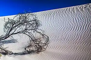 The park contains a range of coastal habitats, but the strangest, and the big draw for visitors, is the area of desert studded with limestone pinnacles up to 3.5 m tall, like monuments or tombstones. Ancient seashells became scrunched up and blown inland to form dunes, which compacted and concreted, but there are several theories about what happened next. The theory favoured by the park is that an acid topsoil formed, then vegetable roots bored into the dunes and let in acidified rainwater. This eroded channels down through the dunes that filled with inert quartz sand. Eventually the sand blew away and the pillars between emerged as pinnacles. Some of them have caps of harder limestone representing the original dune surface - like miniature hoodoos though those are entirely wind-sculpted.