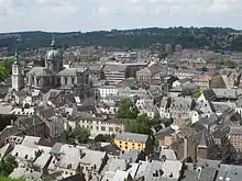 Namur's location at the head of the Ardennes has made it a popular tourist centre. The town's most prominent sight is the Citadel of Namur, now demilitarised and open to the public. Namur also has a distinctive 18th-century cathedral dedicated to Saint Aubain and a belfry classified by UNESCO as part of the Belfries of Belgium and France which are listed as a World Heritage Site. It has a casino in its southern district on the left bank of the Meuse.